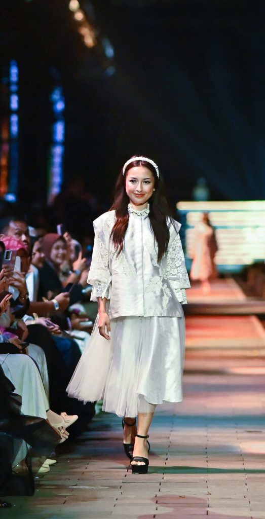 Runway Borobudur malam itu dipenuhi nuansa hangat. Siluet busana perempuan, laki-laki, hingga anak-anak berjalan berdampingan, menciptakan gambaran utuh tentang keluarga. Palet warna yang selaras dan motif yang saling terhubung menegaskan pesan bahwa Hari Raya adalah tentang kebersamaan, tentang langkah-langkah kecil yang dijalani bersama.