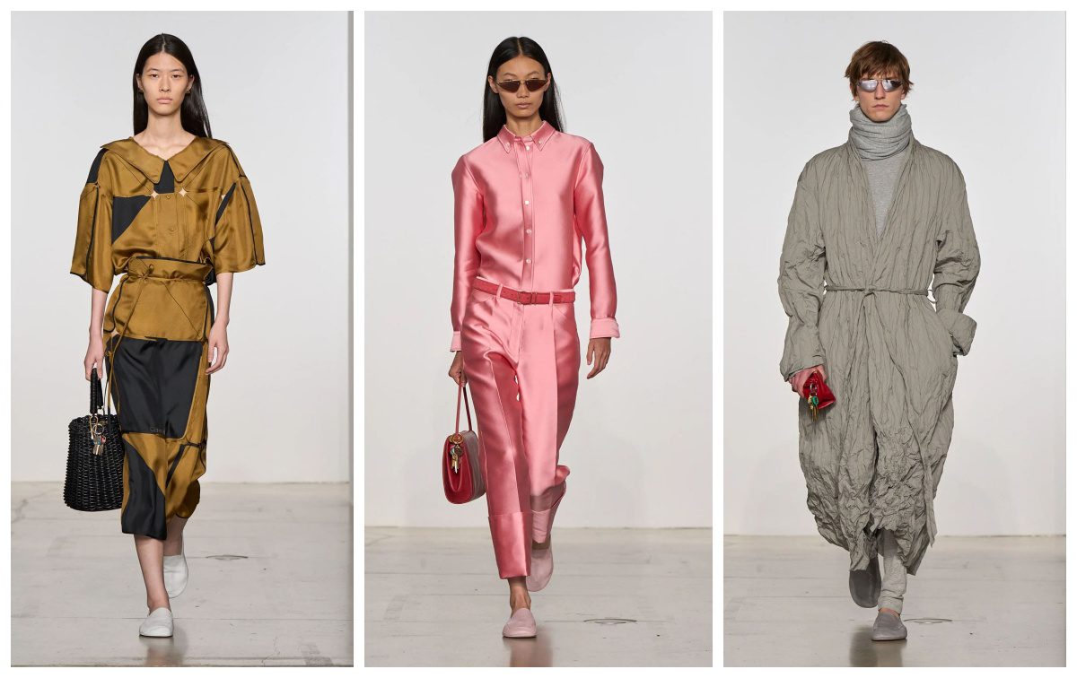 Koleksi kali ini mengusung filosofi “Calvin Klein-ism” sebagai cara hidup, bukan sekadar penampilan, yang menghadirkan perpaduan dinamis antara siluet oversized yang modern dan desain ramping nan sensual khas era 1990-an. Pembukaan pertunjukan langsung mencuri perhatian dengan gaun apron putih tanpa punggung yang mengingatkan pada gaun sutra ikonik yang pernah dikenakan Carolyn Bessette-Kennedy, simbol elegansi dan kesederhanaan merek ini.