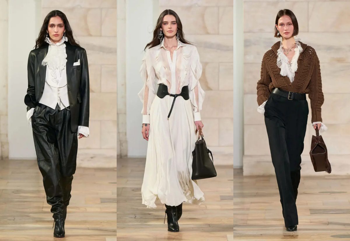 Koleksi Fall Winter 2025 dari Ralph Lauren terinspirasi oleh sosok wanita modern yang dinamis dan penuh ekspresi. Tema “Modern Romantics” mengedepankan gaya yang romantis namun tetap kuat dan berani. Ralph Lauren menampilkan busana yang menggabungkan elemen-elemen klasik seperti ruffles, lace, dan velvet, dengan siluet modern yang sleek dan effortless. Koleksi ini dirancang untuk wanita yang ingin tampil anggun dan percaya diri dalam berbagai kesempatan.