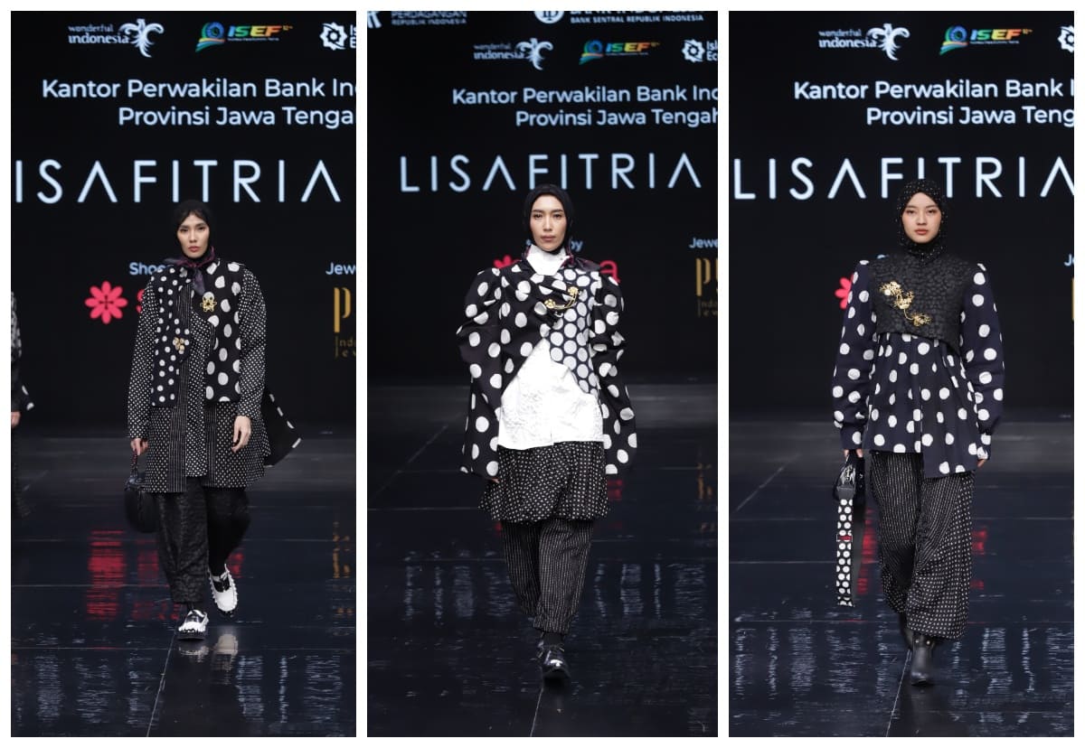 Namun, koleksi ini juga menampilkan kemampuannya dalam menciptakan pakaian malam yang menawan. Salah satu sorotan adalah gaun polkadot hitam-putih tanpa tali, dengan ruffles di bagian pinggang dan rok lebar, penampilan yang digambarkan Gordon sebagai “mengejar wow.” Gaun ini, seperti keseluruhan koleksi, menunjukkan kemampuan Gordon dalam menyeimbangkan tradisi dengan semangat dinamis dan berwawasan ke depan.