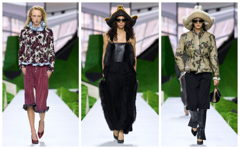 Salah satu highlight adalah “Explorer Cape”, cape berhood dari kulit daur ulang dengan kompas terintegrasi. Koleksi ini juga menampilkan tampilan full-monogram untuk red carpet, dilengkapi aksesori seperti kacamata pilot edisi terbatas dan jam Speedy chronograph. Menariknya, sekitar 95% material yang digunakan berasal dari bahan daur ulang, menegaskan komitmen terhadap keberlanjutan.