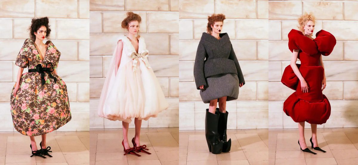Busana-busana lain dalam koleksi ini meliputi rok bubble raksasa yang dipadukan dengan sepatu bot setinggi lutut, jaket double-breasted dengan kerah tebal yang dipadukan dengan rok dari dua panel potongan yang dijahit menjadi satu, dan rajutan berwarna pastel dengan lengan balon.