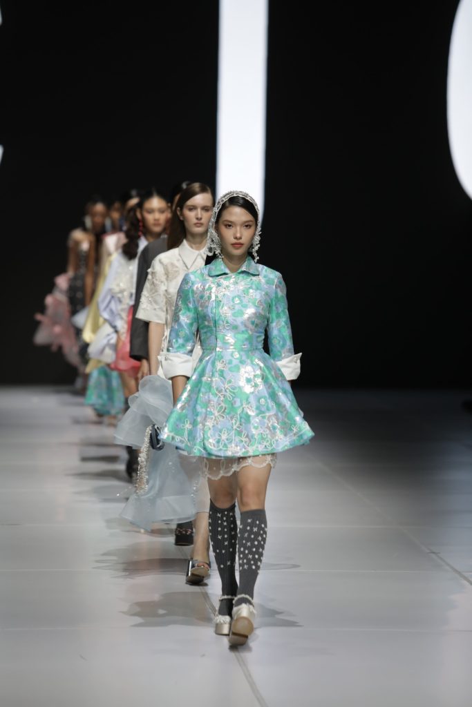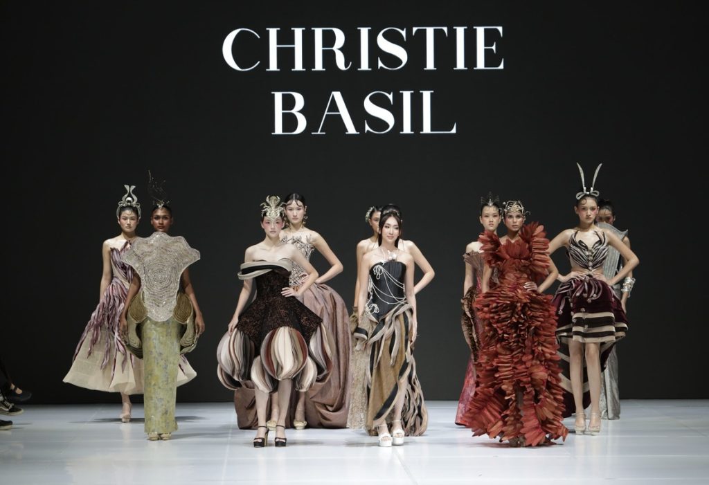Selanjutnya, Christie Basil membawakan koleksi berjudul “Glass Onion”. Inspirasinya datang dari keunikan bawang (onion) yang penuh makna; terlihat sederhana namun memiliki lapisan-lapisan yang perlu dikupas. Koleksi ini menyimbolkan bahwa proses membuka lapisan diri yang jujur, rapuh, dan paling murni seringkali melibatkan ketidaknyamanan, layaknya mengupas bawang.