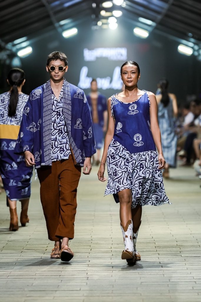 Plesiran, yang dalam bahasa Jawa berarti bertamasya atau berjalan-jalan untuk menghibur hati, diterjemahkan Lemari Lila sebagai busana resort wear yang kasual namun tetap elegan. Di atas runway, siluet mengalir tampak ringan dan membebaskan gerak, gaun tanpa lengan, atasan longgar, hingga set dua potong yang nyaman dikenakan untuk liburan di destinasi tropis atau iklim hangat. Kain-kainnya seolah ikut bernapas, menyerap keringat, dan melambai mengikuti langkah model.