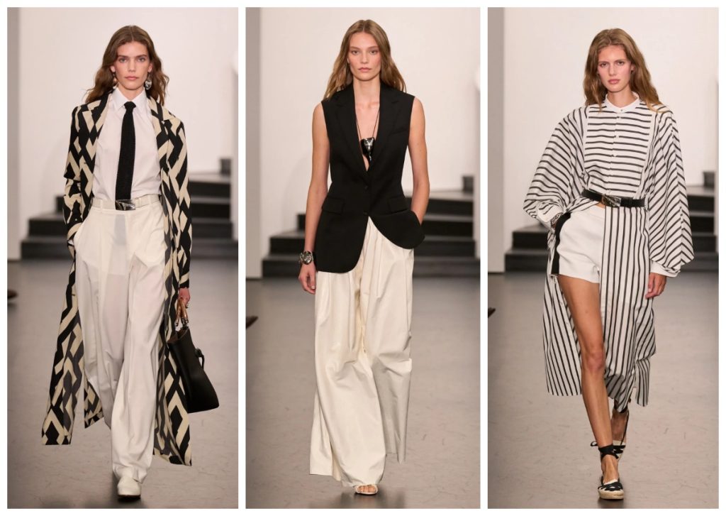 Nuansa nautical menjadi salah satu tema yang menonjol di koleksi ini. Warna-warna dominan hitam, putih, dan merah diperkaya aksen yang mengingatkan pada kapal layar dan Pantai, menyuntikkan kesegaran dan optimisme musim panas. Garis-garis klasik berpadu dengan motif bunga yang lembut, menciptakan efek kontras yang menawan antara formalitas dan sentuhan romantis.