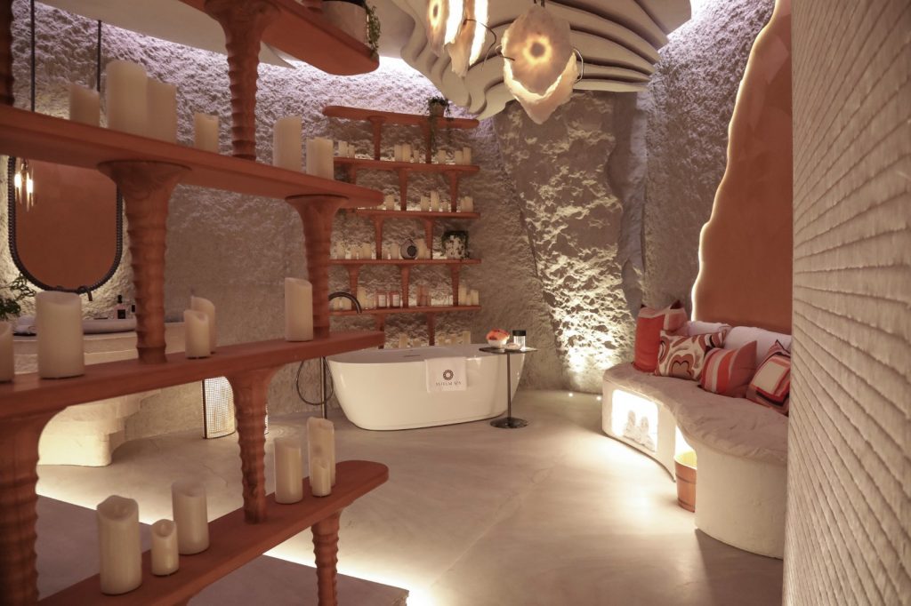 – Viviane Faye menghadirkan desain spa yang terinspirasi dari gua di Sardinia, Italia. Dengan warna bebatuan seperti abu-abu dan krem, spa ini mengusung gaya sophisticated dengan desain salt cave yang menenangkan.